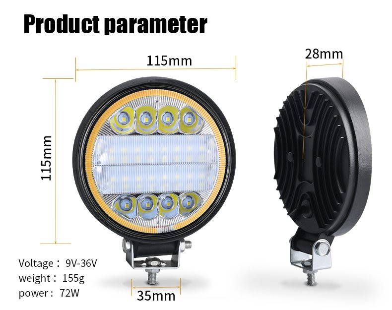 Apertureulbs کے ساتھ بڑے فیلڈ لیڈ ورک لائٹ آف ویو 24LED 72W راؤنڈ 28MM